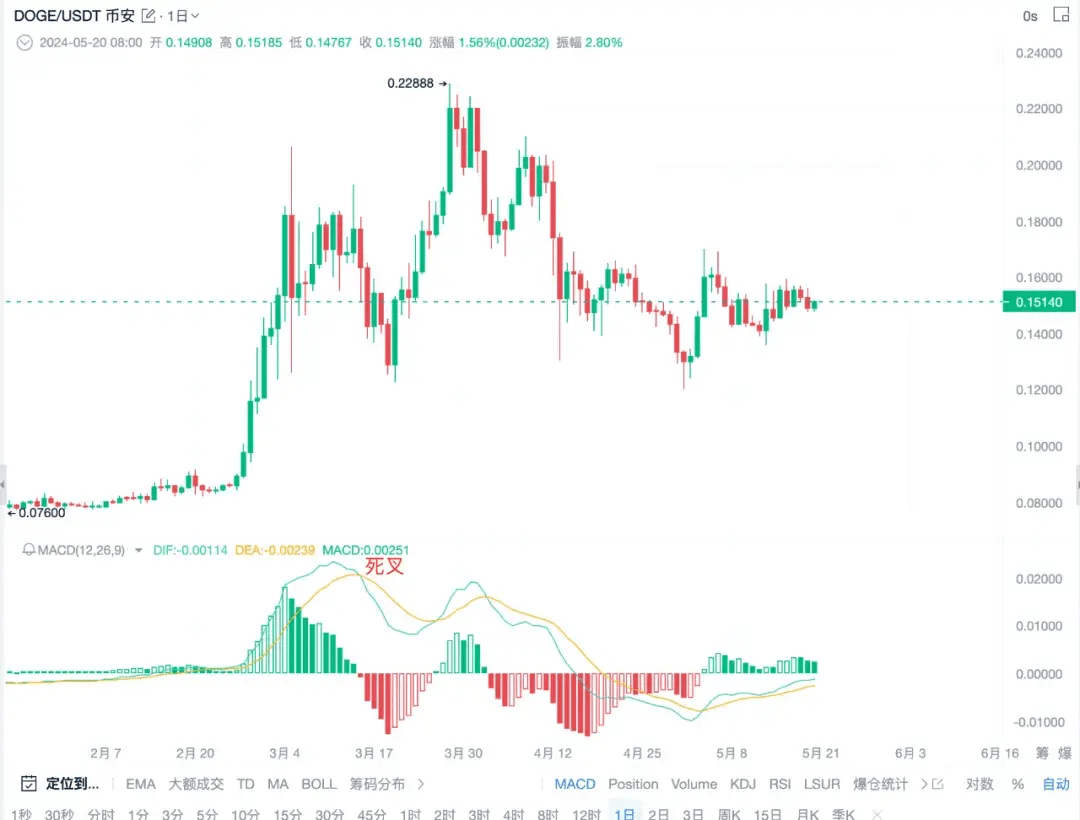 技术分析给我带来最大的改变就是,知道如何规避风险。例如我近期买入了一个IEO币种,涨幅接近8倍。以往的话,我要么半道就恐高出货了,丢失了后期的大利润,要么经历最高点后死拿被套,如今这个币已经跌去了一半。这次我用简单的长短均线系统,发现该币种在大级别图中已经从多方市场转向空方市场,下跌风险较大,我及时出货了,保住了绝大部分利润。