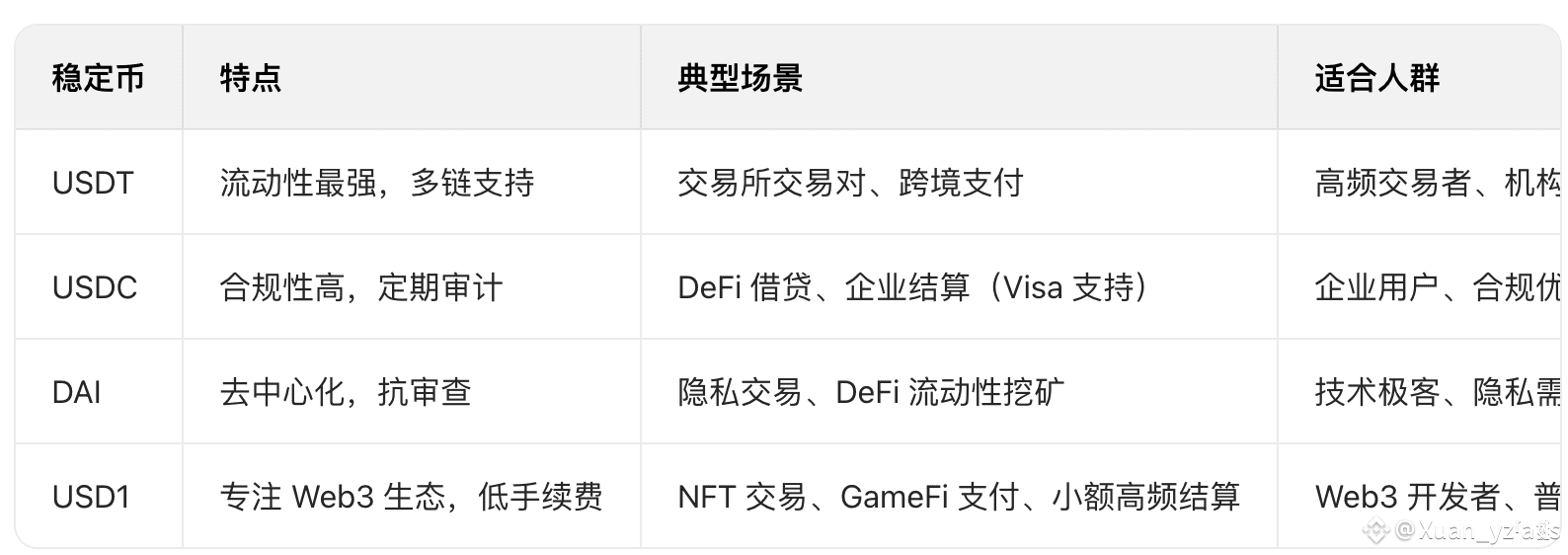 🚀 主流稳定币应用场景对比