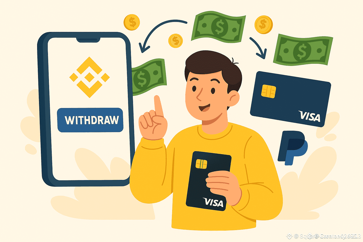 🔸 الطريقة الأولى: بيع العملات وتحويلها مباشرة عبر P2P إلى فيزا أو بايبال