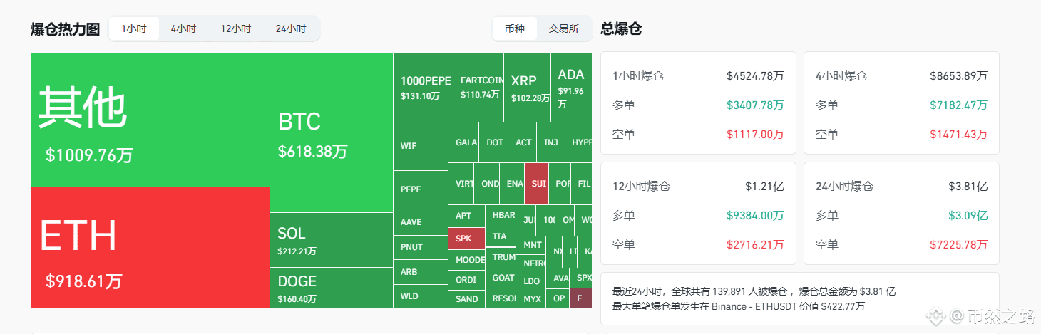 最近24小时,全球共有 139,891 人被爆仓 ,爆仓总金额为 $3.81 亿