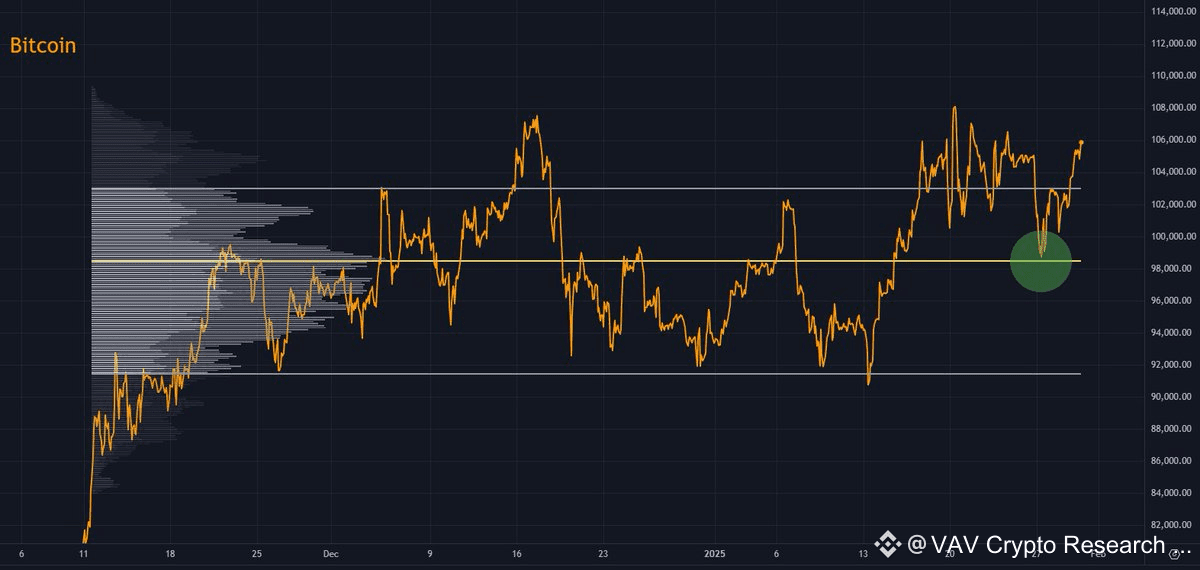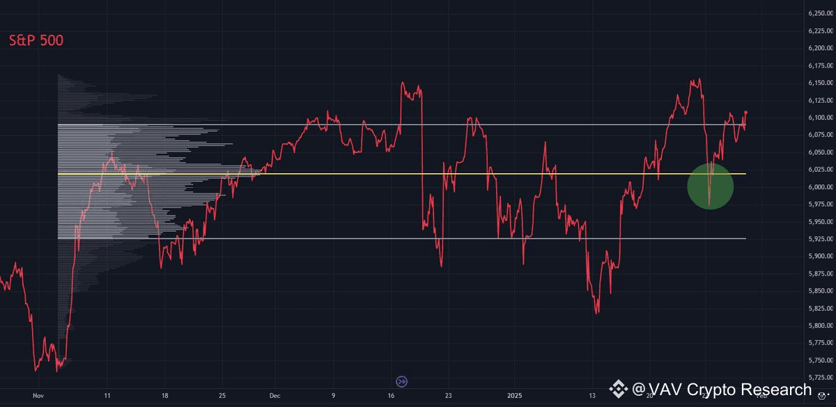 Both the S&P 500 and bitcoin retested the Point of Control of the range (🟡) and bounced strongly back out of the range Value Area (sign of strength).