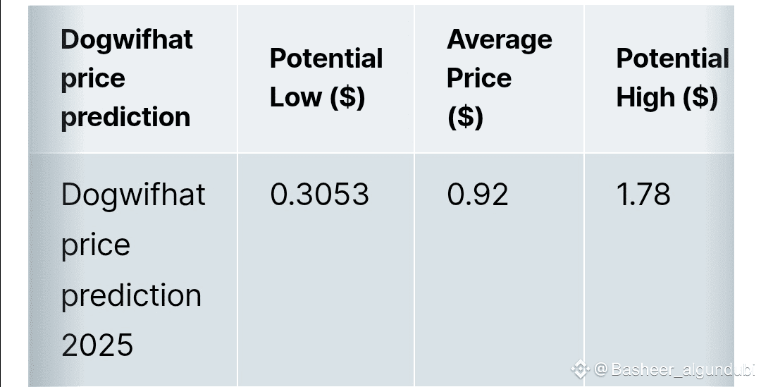 تشير توقعات سعر #Dogwifhat لعام ٢٠٢٥ إلى سعر أقصى قدره ١.٧٨ دولار أمريكي.