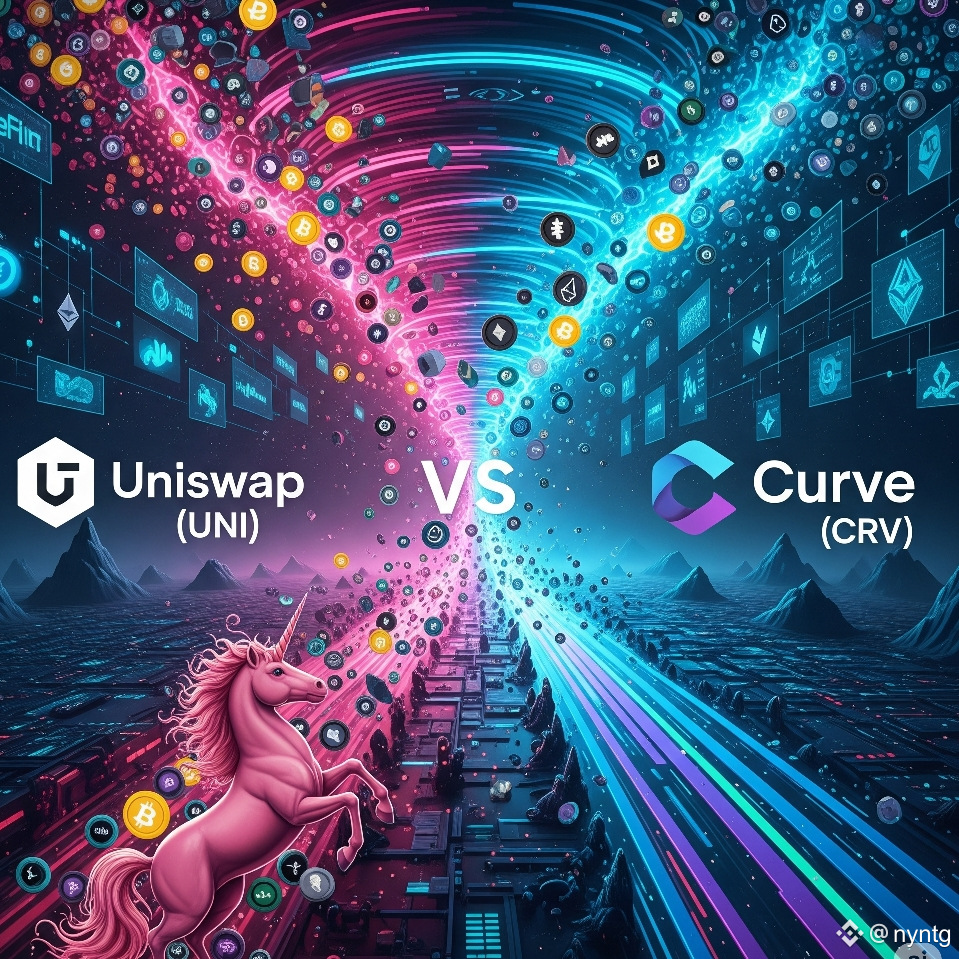 Uniswap dan Curve bukanlah pesaing langsung, melainkan dua entitas yang saling melengkapi. Uniswap adalah pasar ritel DeFi yang dinamis dan inovatif, tempat likuiditas untuk ribuan aset bisa ditemukan. Ia adalah wajah dari perdagangan terdesentralisasi. Curve adalah pasar grosir dan infrastruktur inti, sebuah utilitas yang sangat efisien yang menjaga roda perekonomian stablecoin dan LST tetap berputar. Memahami keduanya adalah memahami bahwa dalam DeFi, ada alat yang tepat untuk setiap pekerjaan yang berbeda.#DEFİ #Uniswap. #crv $UNI $CRV