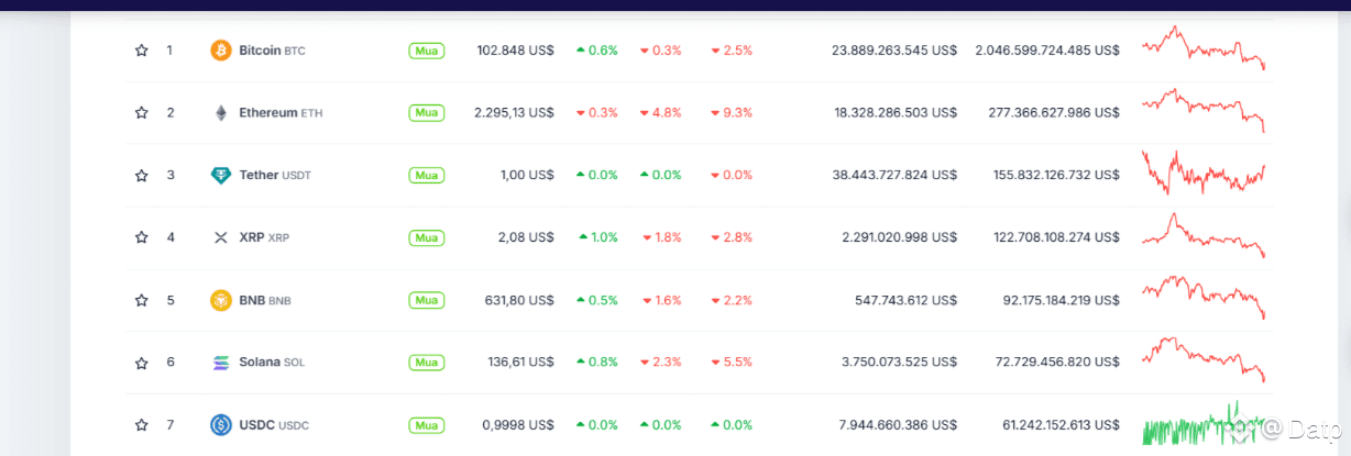 On Sunday morning (June 22), red covered many Altcoins in the context of BTC (Bitcoin) "absorbing Dom" fiercely. Although the price of BTC only decreased slightly by 0.3%, the strong increase of BTC.D caused a series of top coins such as DOGE (Dogecoin), ETH (Ethereum) to decrease by 3 - 5%.