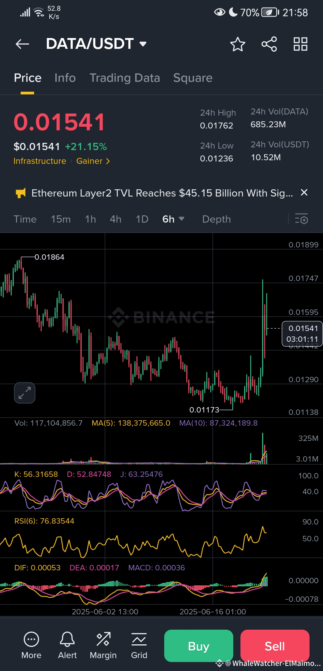 ✅ انفجار سعري قوي! بعد الارتداد من قاع 0.01173، انطلقت DATA بقوة لتصل إلى 0.01595، محققة مكاسب مذهلة تجاوزت +21% خلال الـ24 ساعة الأخيرة – مما يُظهر دخول سيولة قوية بشكل مفاجئ!
