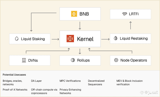 The KernelDAO ecosystem is designed to capture multiple market opportunities, including,Liquid restaking for Ethereum and other major assets.Restaking infrastructure across L1s like BNB Chain, and beyond.