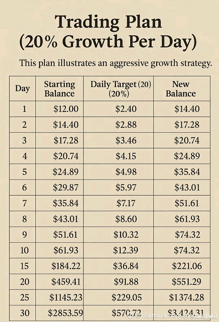 This aggressive 30-day plan shows exactly how traders can achieve that, with a focus on daily compounding at 20%.