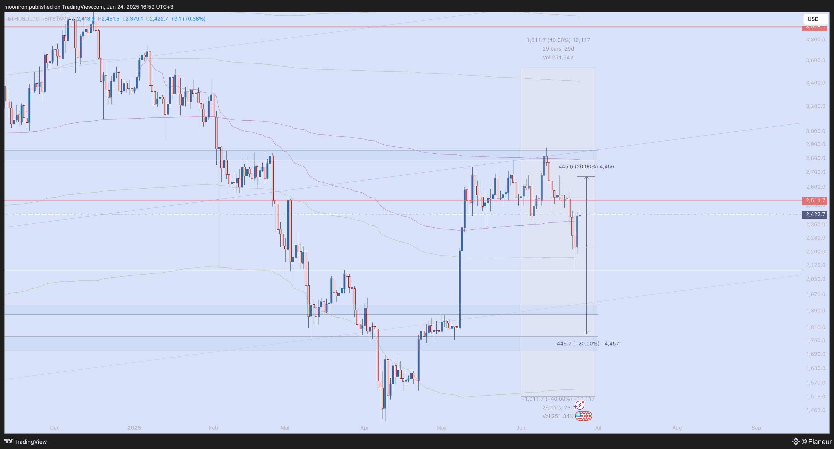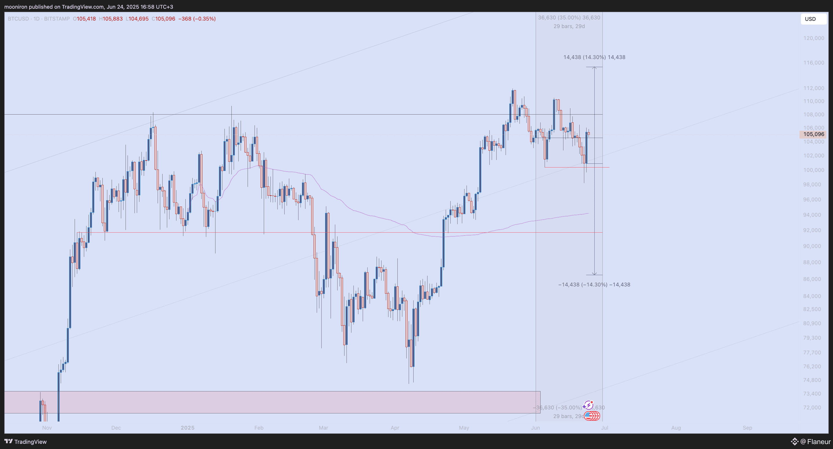 We closed last week with a sell-off following the US bombing attempt in the Iran-Israel conflict. Although we saw a dip on Sunday due to rumors of the Strait of Hormuz closing, this didn't fully reflect reality, and yesterday we witnessed ceasefire agreements. In a period where fear had escalated so much, I believed the decline was over and took a long position. I think the coming days are critical.