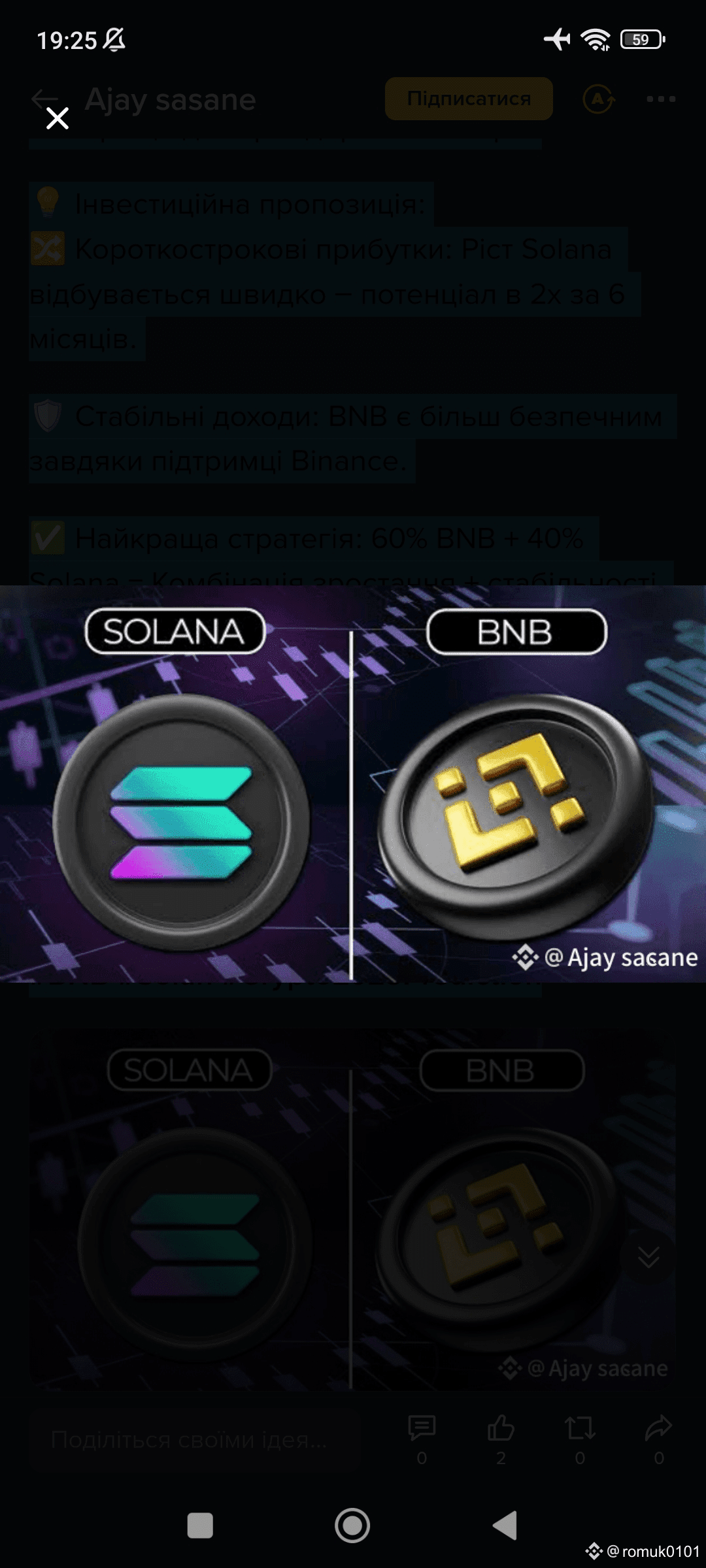 ✅ Найкраща стратегія: 60% BNB + 40% Solana = Комбінація зростання + стабільності.