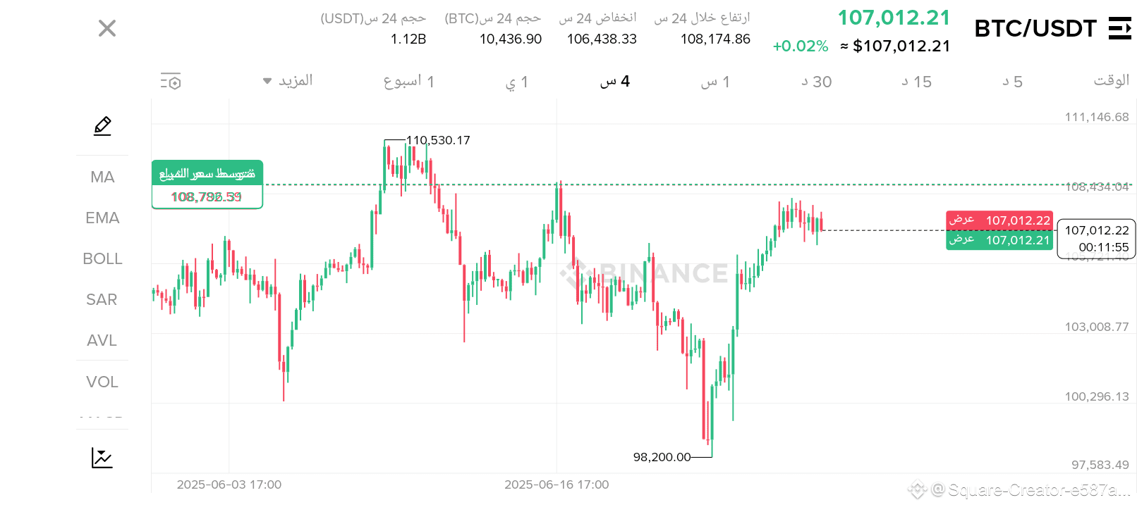 متوسط سعر الشراء (على الشارت) عند: 108,782 USDT ➤ ما زال السعر أسفله، ما يعني احتمال محاولة العودة له قبل أي انهيار.