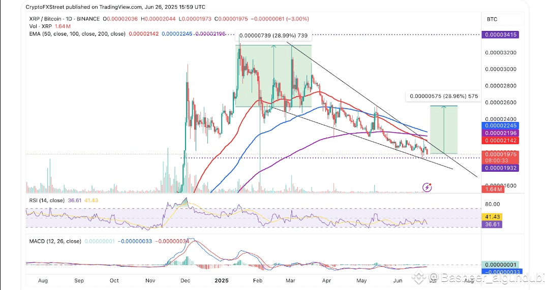 يشير المحللون إلى احتمال ظهور نمط إسفين هابط على مخطط #XRPBTC ، مما يشير إلى انتعاش محتمل بنسبة 29% ليصل إلى 0.00002560 في حال تأكيده.