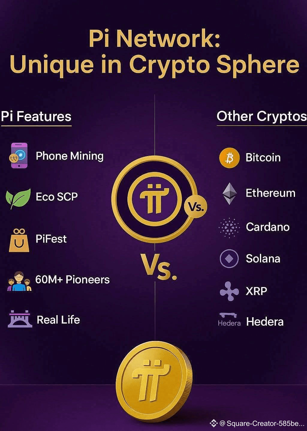 لماذا تختلف Pi عن Bitcoin وEthereum وCardano وSolana وXRP وHedera؟