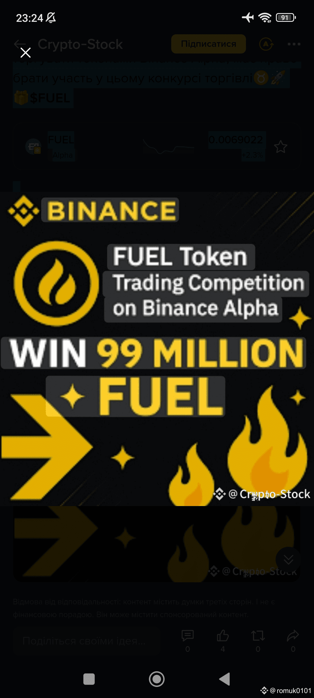 🌹Тільки угоди, виконані через Binance Wallet (Без ключа) або Binance Alpha, підходять для цієї акції, виключаючи транзакції з третіх сторін dApp. Конкурс зосереджений виключно на кумулятивних закупівлях, виключаючи продажі. Немає обмежень по обсягу для учасників, і транзакції, пов’язані з мостами токенів, не підлягають участі. Торговий обсяг з пар токенів Binance Alpha-to-Alpha не буде враховуватися для балів Binance Alpha або впливати на ранжування в конкурсі. Щоб взяти участь, користувачі повинні оновити свій додаток Binance до останньої версії, створити та зробити резервну копію Binance Wallet (Без ключа) і торгувати FUEL протягом періоду акції.