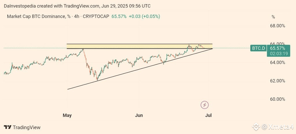 Bitcoin Dominance ($BTC.D) just rejected from a major resistance level, but it’s still holding above the ascending triangle breakout zone — a pivotal point for both BTC and the broader altcoin market.