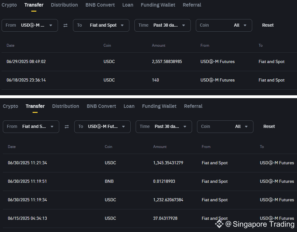 Feeling good, I decided to try my luck at Spot as well. I moved my funds from Futures to Spot to see if I could win some extra prizes. I quickly realized it was too late in the competition and moved them back (image 2).