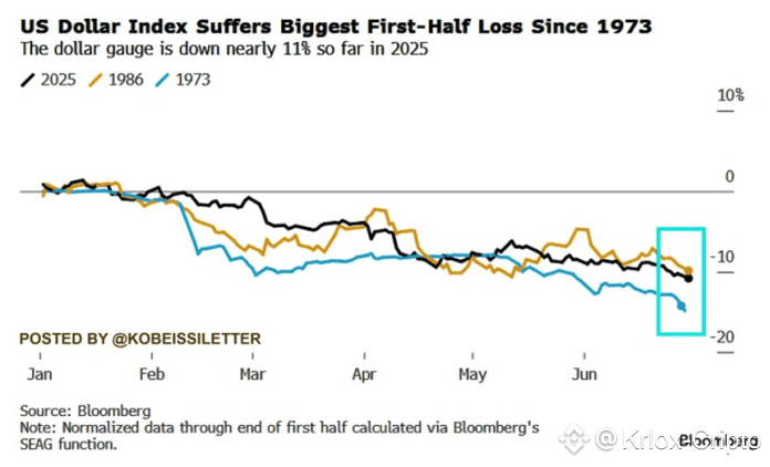 En cualquier caso, el rendimiento del dólar se mantiene en una posición deficiente desde que Donald Trump asumió el poder. La misma cuenta TKL remarca que el índice del dólar está en el peor momento desde 1986. Además, el gráfico sugiere que, de continuar esta tendencia, podría incluso ser peor que el mal momento de 1973.