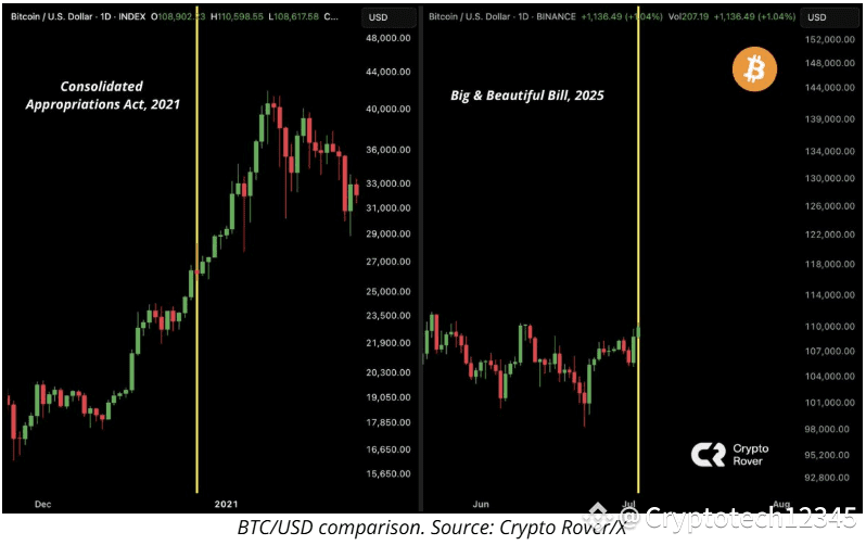 If the same price action were to follow the Big Beautiful Bill, Bitcoin would end up passing $150,000.