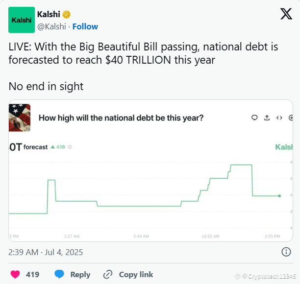 Bitcoin has historically reacted extremely positively to signals that US borrowing will increase. Trump’s “Big Beautiful Bill” may be no exception, as estimates see US national debt exploding to $40 trillion in 2025.