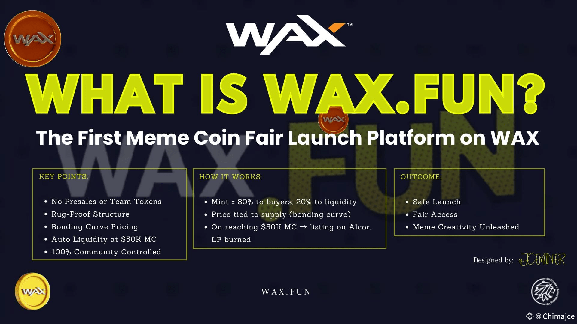This model prevents rug-pulls by design, ensures no team or insider advantages, and creates a level playing field for everyone. That makes WAX.fun not just a meme coin launcher, but a decentralized movement for meme-driven creativity and community ownership.
