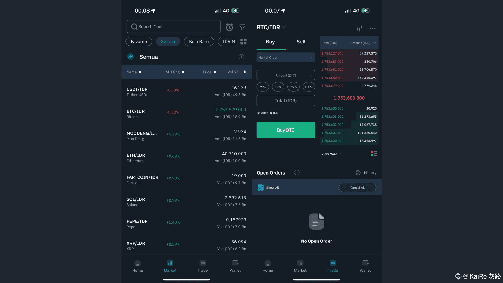 Harus deposit IDR terlebih dahulu, lalu beli USDT secara manual via market