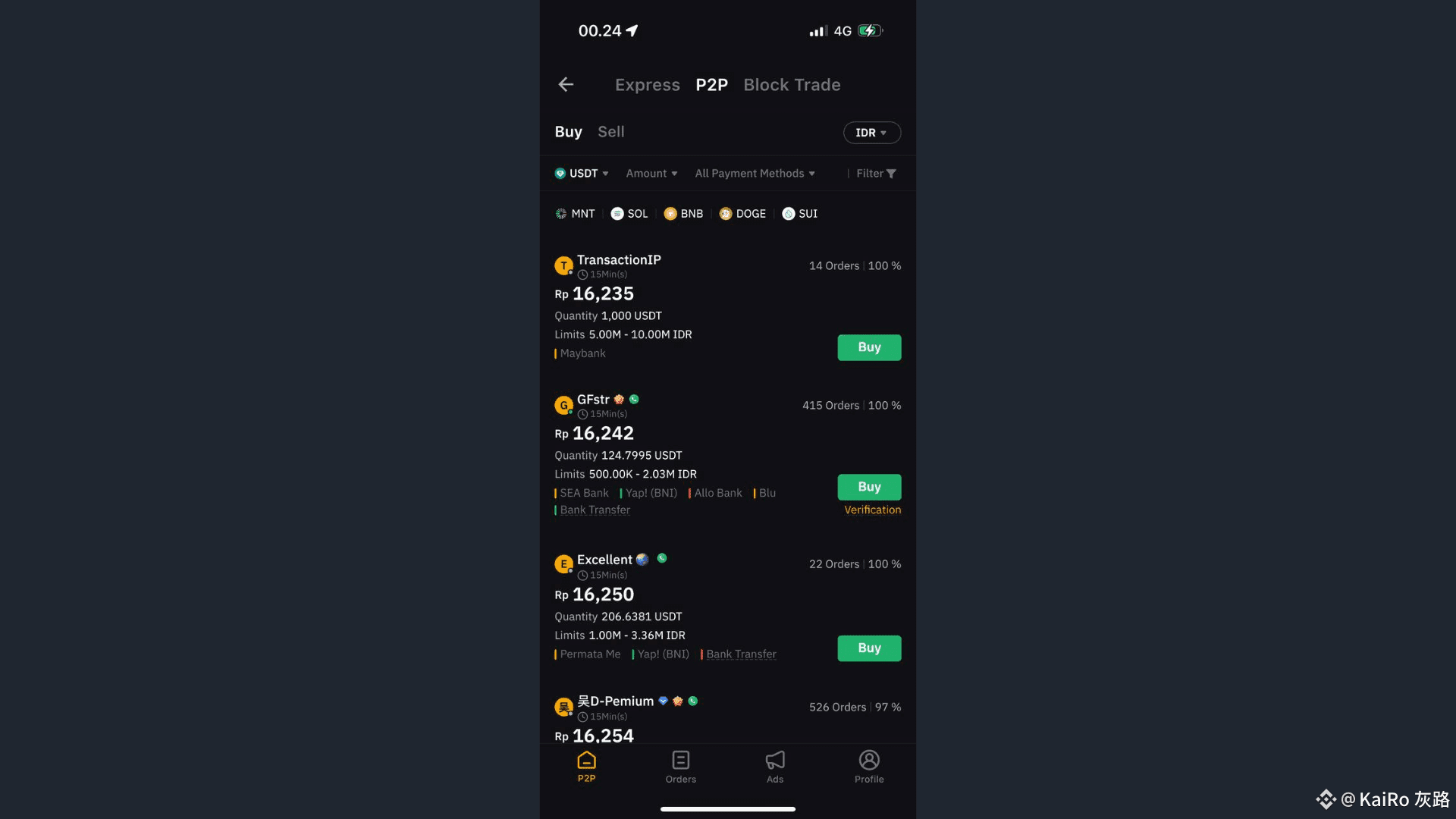 Tidak ada deposit IDR langsung — hanya bisa beli via P2P