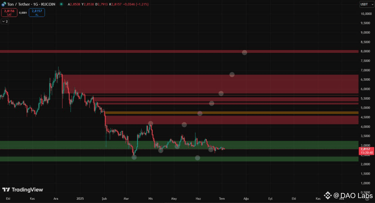 The $TON is being monitored within the review of @DAO Labs #SocialMining framework, with a consecutive accumulated appearance around critical support levels raising analytical interest. So far, in this week, it has not broken down or rallied above the resistance expected, hence it is in a concise contraction stage.
