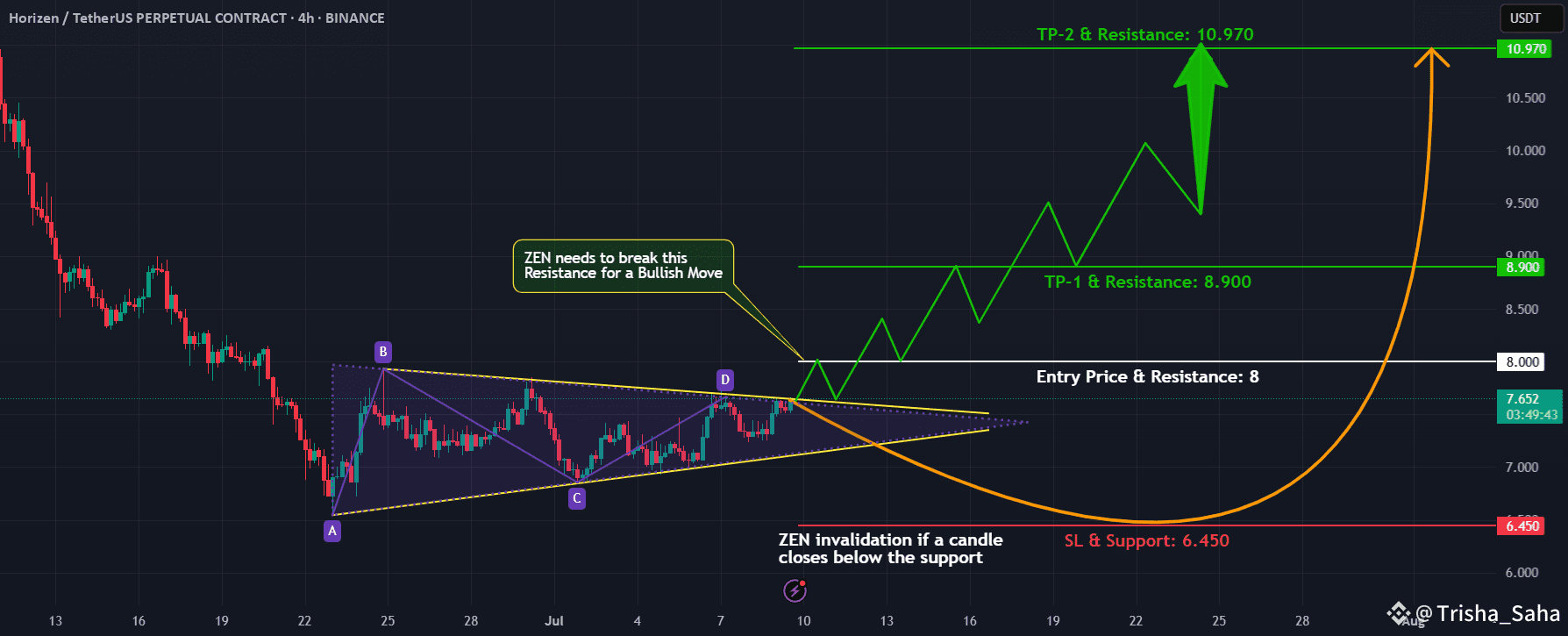 #ZEN #CryptoTrading #PriceAction #TrianglePattern #BreakoutTrade