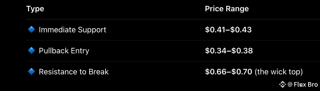 Wait for a retrace toward $0.34–$0.40 and look for support hold.