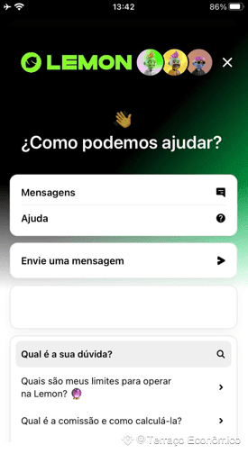 Na Lemon, o botão Ajuda também abre um chat-bot (prints acima), porém o fluxo é limitado: ele primeiro sugere artigos de FAQ e, só depois, permite enviar a mensagem. Relatamos o erro de inclusão de chave Pix e aguardamos mais de 3 horas sem retorno de um atendente. Durante esse período não houve aviso de fila nem estimativa de tempo, o que prejudica a experiência em questões urgentes.