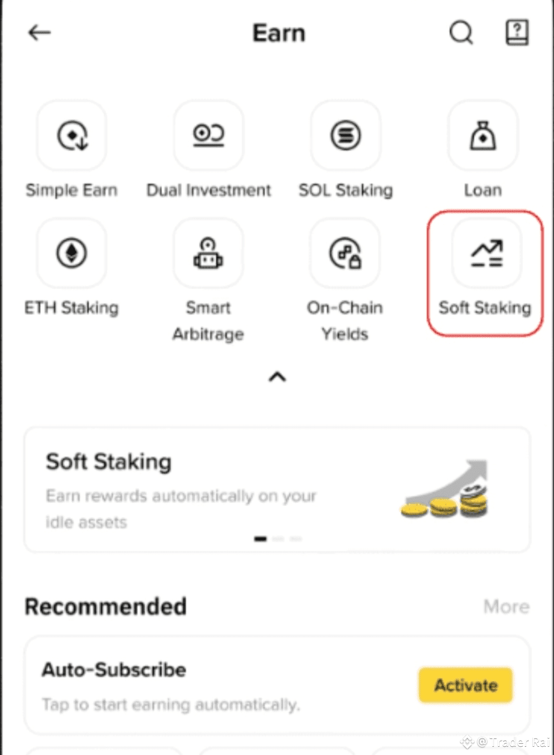💼 Or go to the Earn section in your Binance app and tap “ Soft Staking ”