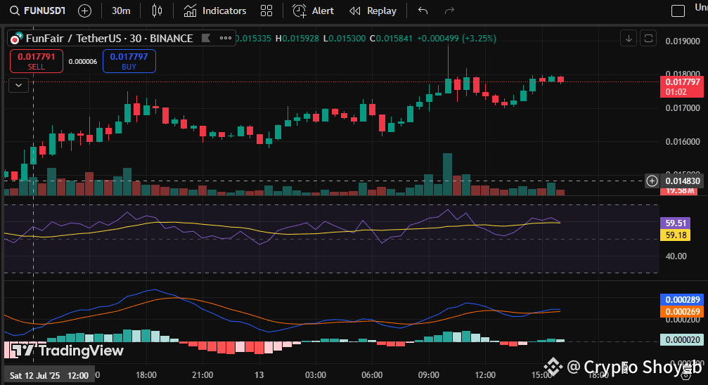 With a 9% increase, FUN is moving closer to important resistance levels. With increasing volume and good support at 0.0168, it is displaying clear indications of a possible breakout. Bulls are in charge, and the price may move toward 0.0200+ if it stays above 0.0174. Because of volatility, maintain a tight stop-loss placement.