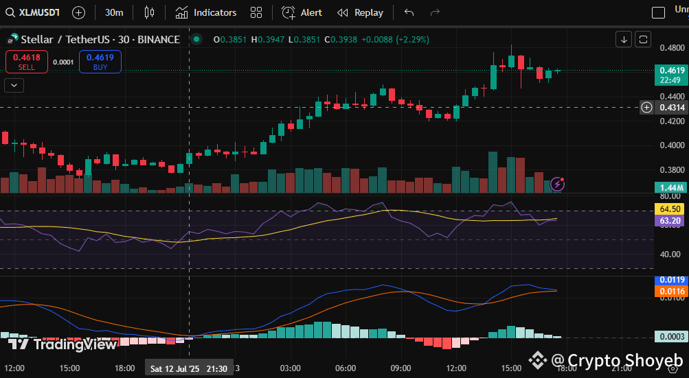 With great daily momentum, XLM is smashing through barrier and is currently trading at 0.4673. Bulls are in complete control, and if strength continues, this breakout might extend toward 0.50 and beyond.