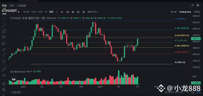 3)ETH上涨至0.618的强压力区即3050附近,但在BTC带领下,这个压力区迟早被突破上去;
