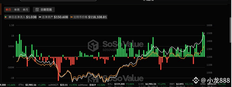2)周线一根大阳线,千军万马来相见,周五的美国ETF机构净流入10亿来推波助澜;
