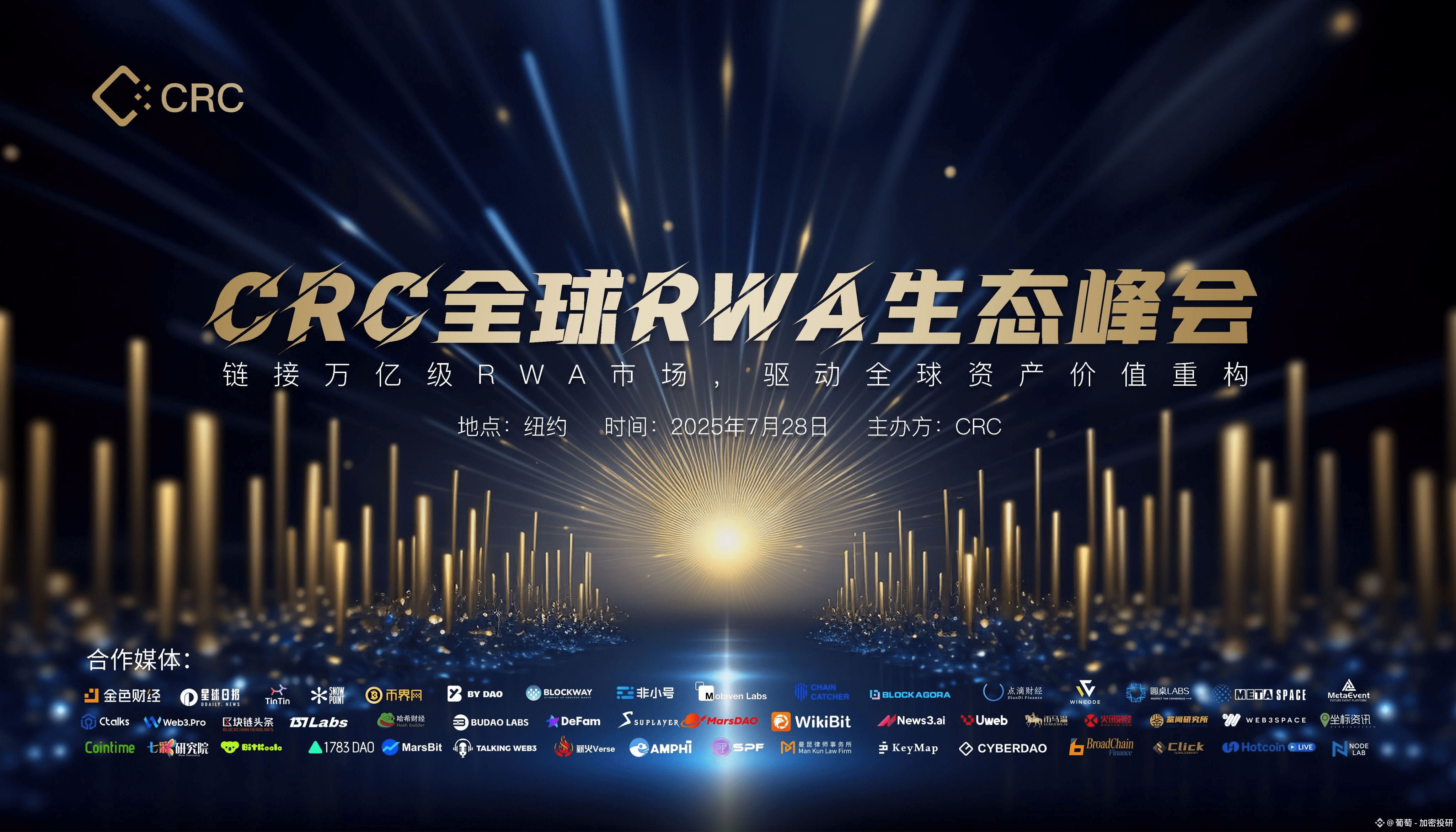 在现实资产通证化趋势日益加速的当下,RWA正成为推动实体资产价值体系重构的重要力量。继香港峰会成功举办后,由CRC主办的全球RWA生态峰会·纽约站将于2025年7月28日在美国纽约隆重举行。