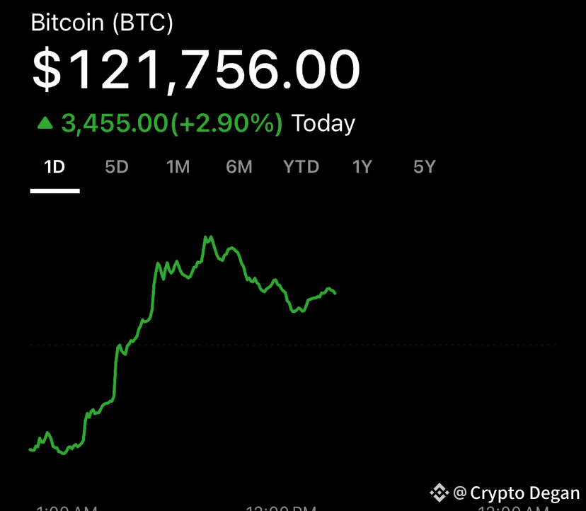 ✅ Bitcoin ($BTC) just hit a new high above $123,000 and is now around $121,000