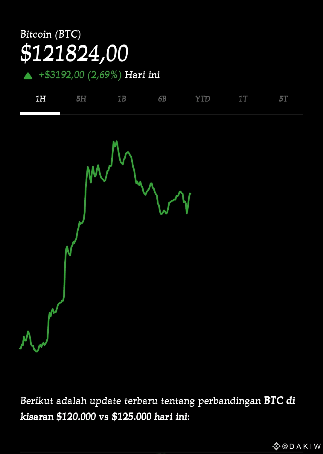 Berikut adalah update terbaru tentang perbandingan BTC di kisaran $120.000 vs $125.000 hari ini: