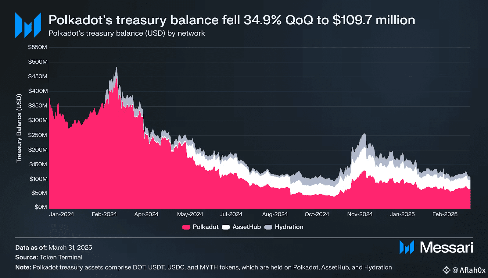 As of March 31, 2025, Polkadot’s treasury held just $109.7M, a steep decline from its previous $400M.