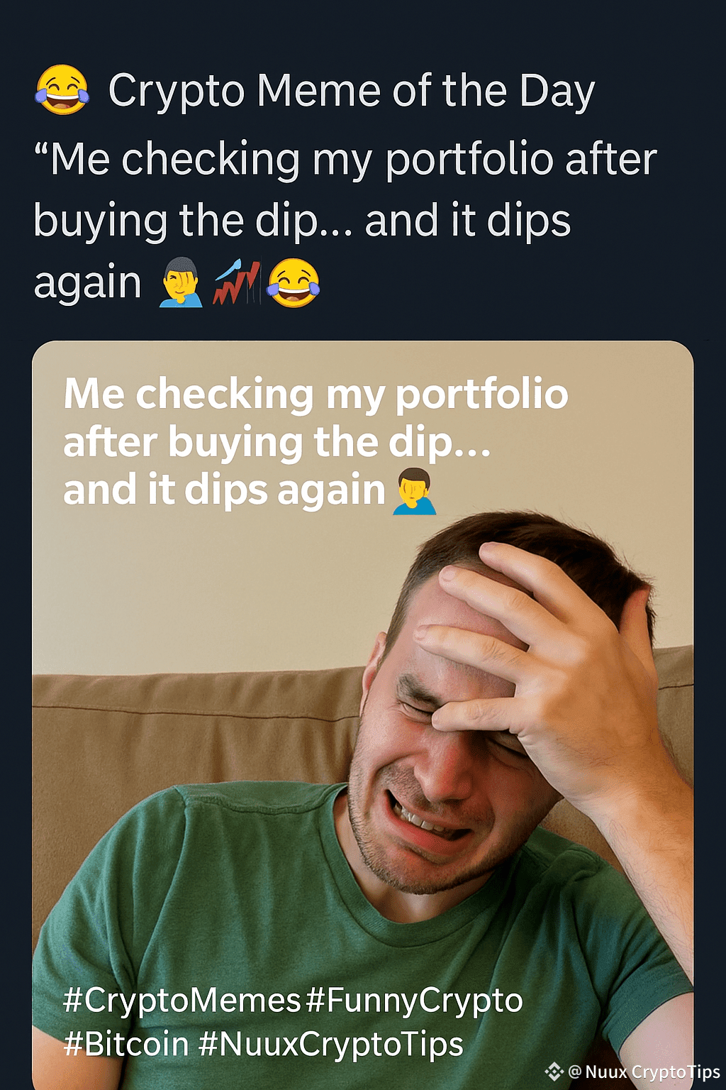 “Me checking my portfolio after buying the dip… and it dips again 🤦♂️📉😂”