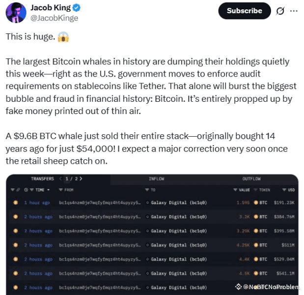 The crypto market is on high alert after a long-dormant Bitcoin whale suddenly transferred $9.6 billion in BTC—originally mined in 2011—raising fears of a major sell-off. The move comes just as the U.S. Senate passed three landmark crypto bills, including the GENIUS Act, sparking mixed reactions across the industry.