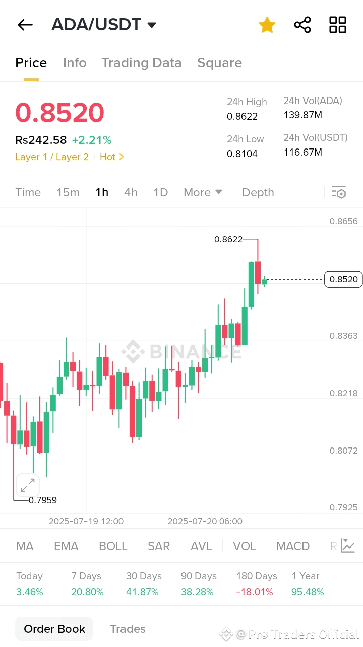 ADA has formed a strong bullish trend, moving from a low of $0.7959 to over $0.86.
