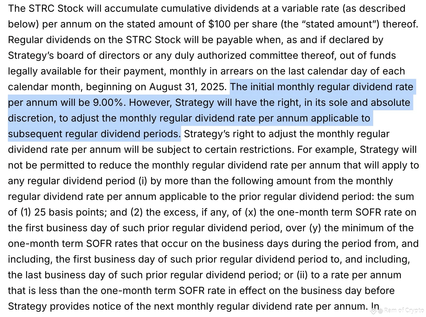 ✧ The STRC token pays 9% in dividends to holders each month