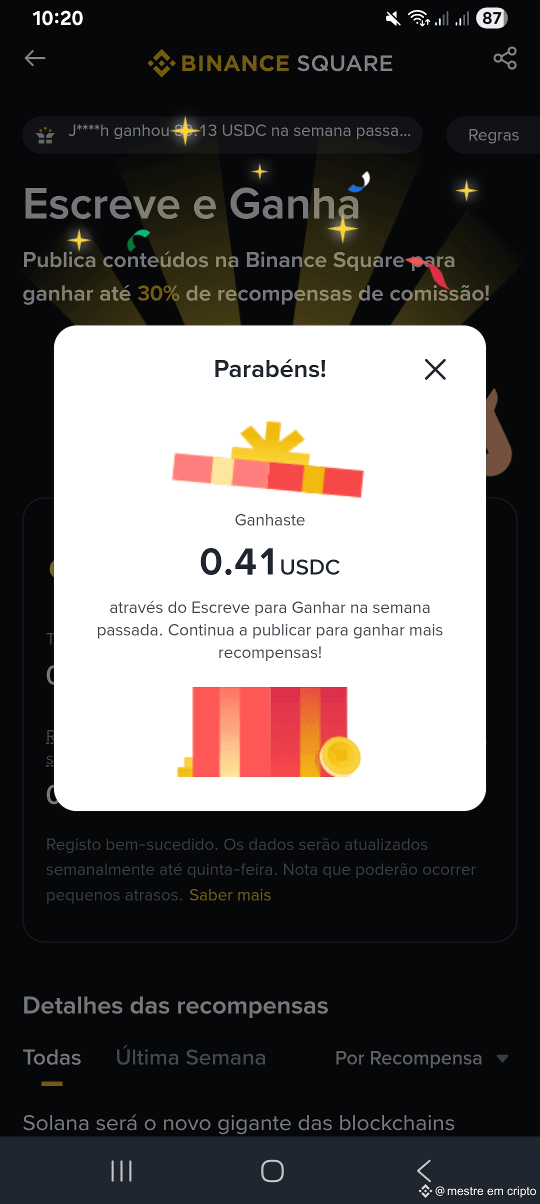 AQUI Vai minha análise. Isso é mentira .Ao menos que vc tenha bastente seguidores e muitas visualização. E engajamento Para alcançar isso .. esse é meu ganho por semana .. ainda sou novo.. tenho um artigo meu . Que viralizou tem mais o menos 40mill visualização e com ele irei ganhar 10 usdc. Nao caia em Furada.. da pra ganhar um dinheiro sim escrevendo artigos.