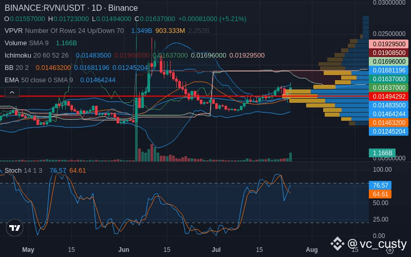 📊 Volumen: 1.166B RVN (alto volumen en la subida. Buena confirmación).