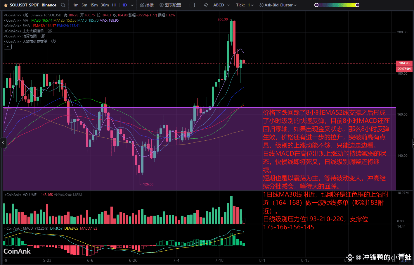 1日线MA30线附近,也刚好是红色框的上沿附近(164-168)做一波短线多单(吃到183附近)。