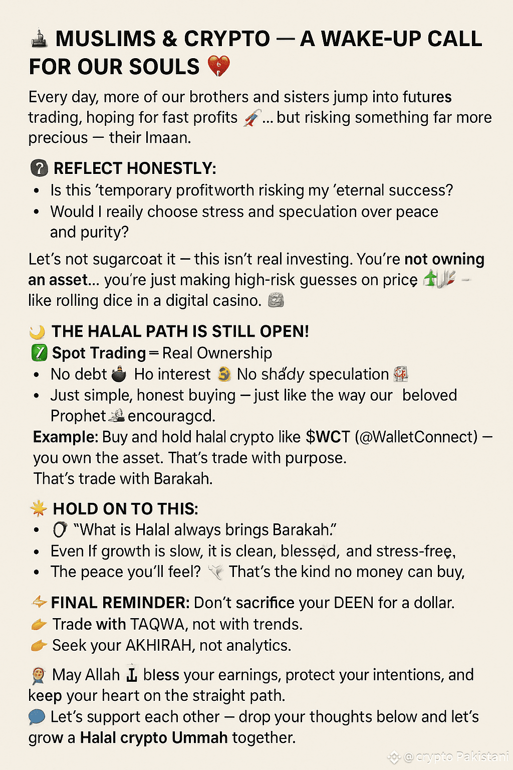 Example: Buy and hold halal crypto like $WCT (@WalletConnect) — you own the asset.