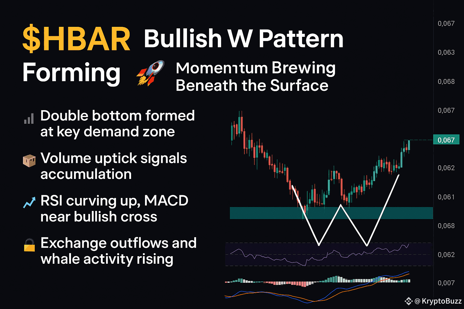 #HBAR #CryptoAnalysis #BullishPattern #WPattern #AltcoinAlert #MACD #RSI #CryptoWhales #ChartWatch #BinanceSquare #HBARBreakout #DYOR #Write2Earn