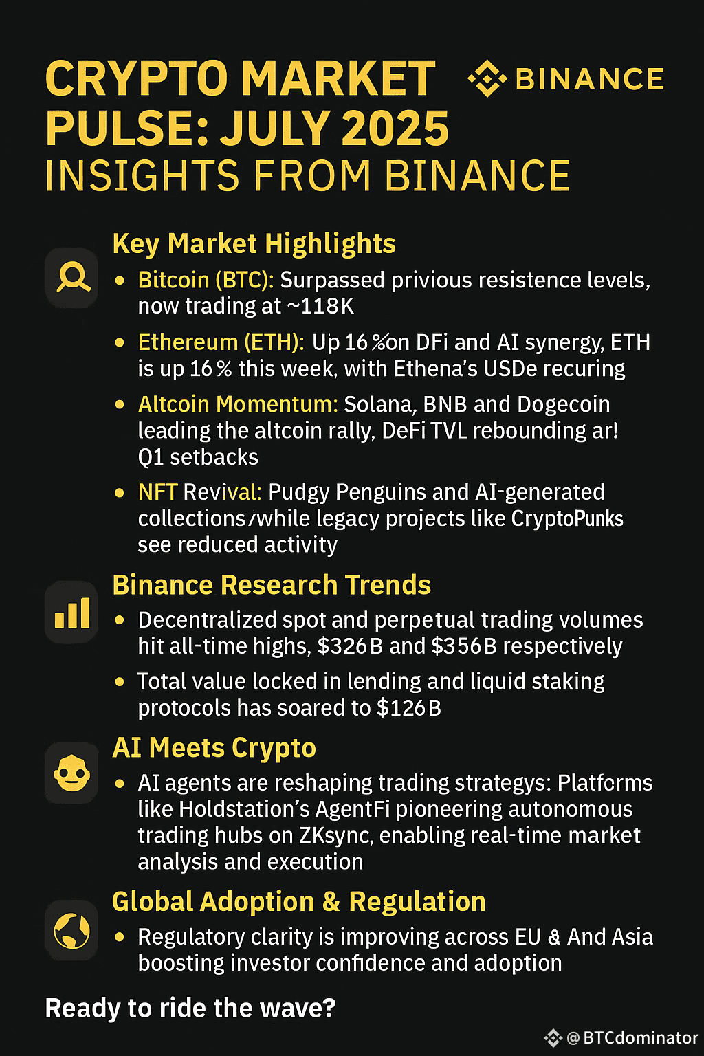 According to Binance Research, decentralized spot and perpetual trading volumes hit all-time highs, with $326B and $356B respectively. The total value locked in lending and liquid staking protocols has soared to $126B, signaling robust user engagement and liquidity.