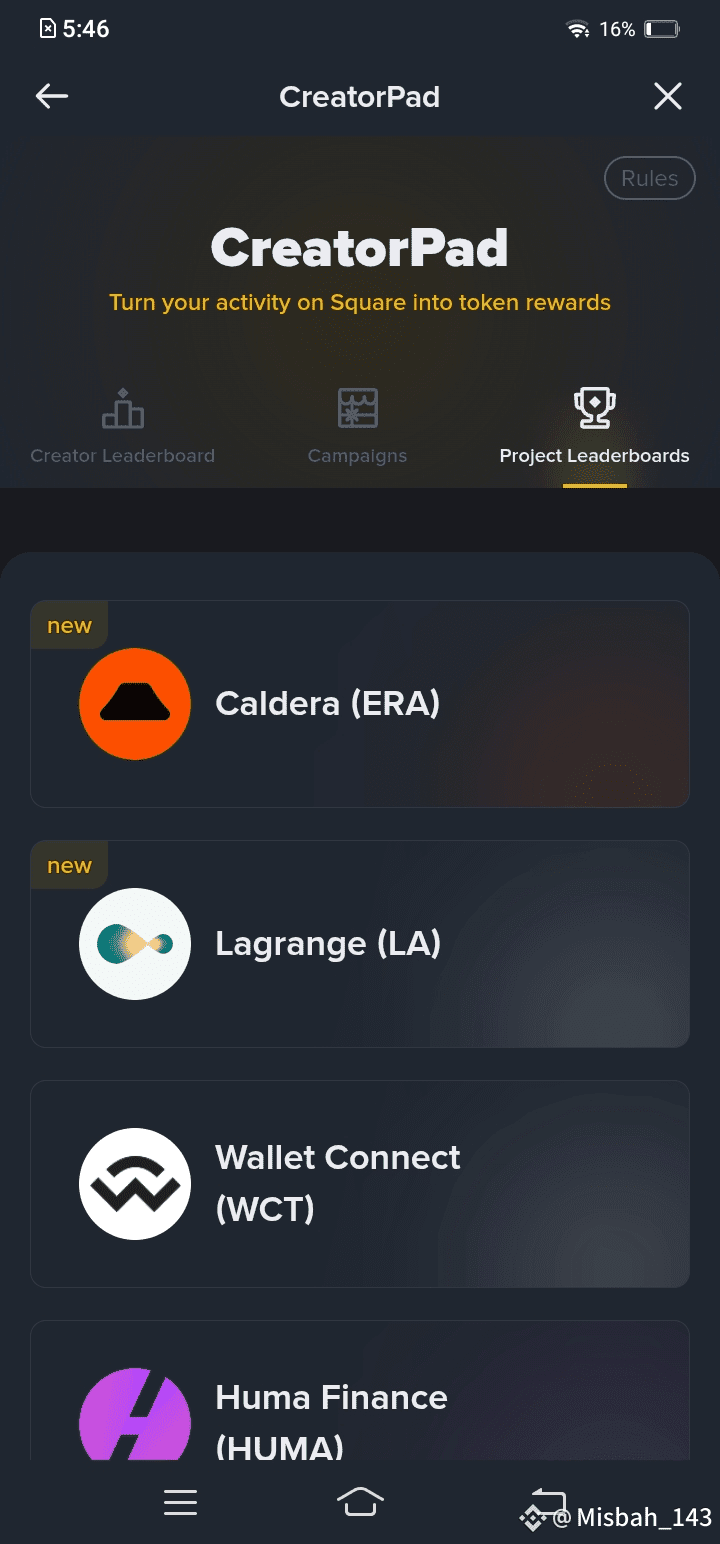 Turn your activity on square into token rewards..#CreatorAward #caldera #huma finance#LagrangeFinance #bnblauncpool