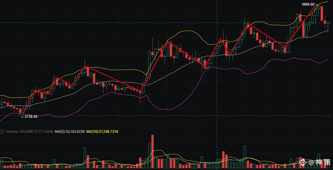 家人们,昨儿个以太坊的走势简直绝了!那叫一个“步步登高”,跟爬泰山似的——早上8点还在3728的“山脚”徘徊,结果愣是一步一个脚印往上拱,每涨一波就歇口气,等市场消化完利好再接着冲,活生生把行情走成了“慢牛登山图”!